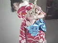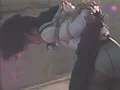 花模様の赤い長襦袢を着た女(春原悠理)を、びしびしと後ろ手に縛りあげていく濡木痴夢男の手練の早業。いきなり高く吊り上げると、うつぶせ吊りから逆さ吊りへと強烈な残酷美の変化を見せて縄は躍動します。次は不気味な地下室の中に、セーラー服を着せられ、哀れに悶えてうごめく悠里のフェティッシュなポーズです。スカートがまくられると、黒いパンスト、透けて見える白いパンティの悩ましさ。と、見る間に華麗な逆さ吊りへと展開します。パンストが下ろされ、パンティがずり下げられると、かわいい尻をよじって羞恥に悶える悠里。その尻へ浴びせられる鞭。全国の悠里ファンには、絶対見逃せない刺激的なシーンです。つぎは黒いレースの下着一枚の悠里の両腕を、背中で一直線に揃えた、凄い直線縛りをお目にかけます。緊美研の例会において緊縛された春原悠里の、3種類の場面はそれぞれに美しく残酷で、悠里ファンを熱狂させることでしょう。とくに直線縛りの縄の掛け方の凄さは、ゾッとするくらいに強烈で残酷味の強いものです。