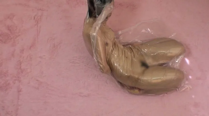 全裸で圧縮袋に入り、空気… 人間真空パック 前屈編