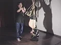 はじめは黒いパンツルックの西宮英子を後ろ手に縛り、宙吊りから逆さ吊りへと比較的静かに展開していきます。妖艶な美貌と豊満な肉体の英子の黒いショーツと白い尻肉の、目もくらむようなフェチ的なうごめき。いきなり、英子を慕う桜川まりが飛び出してきて英子に抱きつきます。女同士の妖しい肉のもつれあい。自由を得た英子はこんどは自分が縄をつかんで、まりを後ろ手に縛り上げます。豊満な尻肉でまりの顔面をおしつぶして呼吸をふさぎ、乳首を責め、激しいスパンキングを行ないます。絶叫する桜川まり。興奮した濡木痴夢男が再び登場し、さらに激しく、これまでにない猛烈な勢いでぎりぎりと、まりに縄をかけていきます。その縄の力にまりはのけぞり、被虐の快楽にむせび泣き、暴れ、叫び狂います。はじめは静寂の中で縛りをすすめ、最後は吹きすさぶ嵐のような激烈な緊縛が展開するドラマチックな熱血映像です。自分をさらけだして縄の被虐に酔い、快楽に狂う桜川まりの凄さ。これもまた縄によるエロチシズムの頂点でしょう。