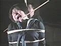セーラー服姿の井上広子を、いきなり麻縄で後ろ手に縛り上げ、細い竹棒の猿轡を無理やり噛ませるという暴力的なシーンからこの作品は始まります。19才の若い豊満な肉付きの少女に対して、ひとかけらの演技も感じさせないリアリズムに徹した加虐映像が、ぐんぐん展開していきます。スカートをまくりあげ、白いパンティを剥き出しにしての鞭打ち、変形片足吊り、はいている靴下を脱がし、それを口の中にねじ込んでの強烈猿轡。次は白い体操着に黒いブルマー姿での超残酷縛り。若い弾力にみちた腹の肉をぎりぎりと細縄で締めあげる蜂胴縛りの異様な凄さ。さらに水平中吊り、縄の猿轡。これでもこか、これでもかとばかりに縛り、責め続ける迫力。この少女はこのときから麻縄の魅力に取り憑かれ、緊縛を解かれた後に、床に正座して匂いの強い麻縄から準に目の前に並べて、その感触と匂いを楽しむというシーンが途中にあります。そしてラストは両手頭上縛りにした井上広子の鼻毛を毛抜きを使って抜き腋毛も抜くという珍しい責め場面もあります。