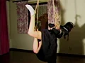 可愛い三つ編みのお下げ髪に、セーラー服を着た水城紫乃を麻縄で後ろ手にきりきりと縛り上げ、その鼻孔をいきなり鼻フックで吊り下げるという刺激的なシーンから始まります。足首に縄をかけて激しい形の中吊りと、紺色のスカートがひるがえって赤い毛糸のパンツが悩ましく露出します。逆さ吊りのままきびしい回転責め。白布のさるぐつわが被虐ムードを強調します。赤いパンツを脱がすと、その下にはぴっちりと白いショーツ、女の体臭が匂う様な下着フェチズムの描写は緊美研独自のものです。その白いショーツの上から細目の麻縄をぎっちりと食い込ませます。正座ポーズからふたたび鼻責め。屈辱と恥辱にゆがむ女の顔。セーラー服を脱いで裸身への後ろ手直進縛り、手首吊り上げ太股縛り、足指強烈緊縛、そして全裸にして縄ふんどし掛け。押さえきれずにはみ出す陰毛のいやらしい眺め。形のいい乳房の上にかかった絶妙の縄。虐待だけが緊縛ではない。女の肉体がかもし出すエロチシズムを最高に演出した緊縛シーンが、次から次へと展開する傑作映像です。