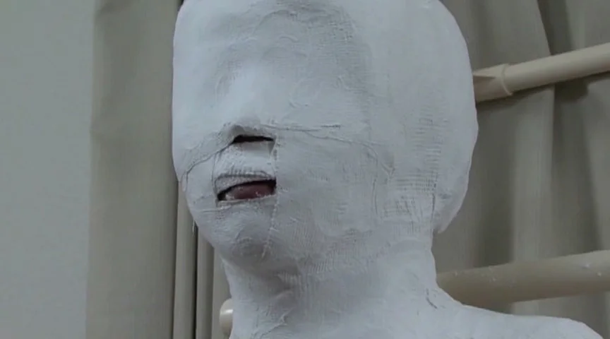 石膏拘束シリーズ第3弾です。今回は、石膏で固まった所に絵の具を塗り、生きた人間が中に入っている、マネキン状態にしてみました。撮影にかなりの時間が掛かった為、石膏を貼付ける作業は、3倍速~5倍速のスピードで編集しておりますので、ご注意下さい。