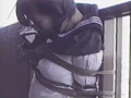 ベランダに追い詰められた半袖のセーラー服の少女に、濡木痴夢男の縄が猛然と襲いかかります。悶え抵抗する少女の口に黒いスカーフを噛ませての残酷猿轡。片足を高く吊り上げての股裂き縛り。白いショーツの上からの非情股縄。そして金属具を使った強烈過酷な鼻責め。やがてベランダのコンクリートの床に正座させられた少女に、夕暮れの風が哀切に吹きぬけます。あくことのない執拗な縄責めに夜が迫り、すすり泣く少女に、さらに凄惨な宙吊り、そして逆さ吊りが待っているのです。夜の町のビルの8階のベランダで逆さ吊りにされたまま放置される少女の哀憐凄美の姿体をどうぞご鑑賞ください。
