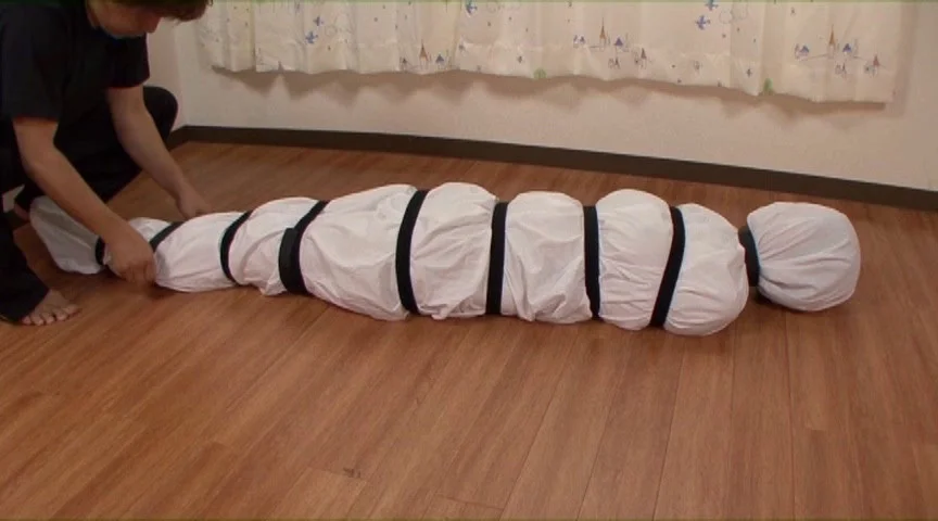 本作では、色々なMummificationにチャレンジしてみました。見所は、ダクトテープで、全身拘束状態にされ、頭についているフックで、首吊りの様にぶら下がっているシーンです。本編終了後に、おまけ映像として、各シーンの本編撮影後が収録しております。 ※本編顔出し