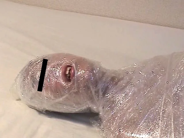 業務用のラップを利用し、全身をくまなくグルグル巻きにし、その後、電マ責め!続いてのシーンでは、電マと一緒にラップでグルグル巻きにしたので、電源が入ったら、自ら取る事が出来ない状態に…この状態にもかかわらず、さらに、唯一残されていた呼吸穴も塞ぎ、苦しいのだけど気持ちいい…。 ※本編顔出し