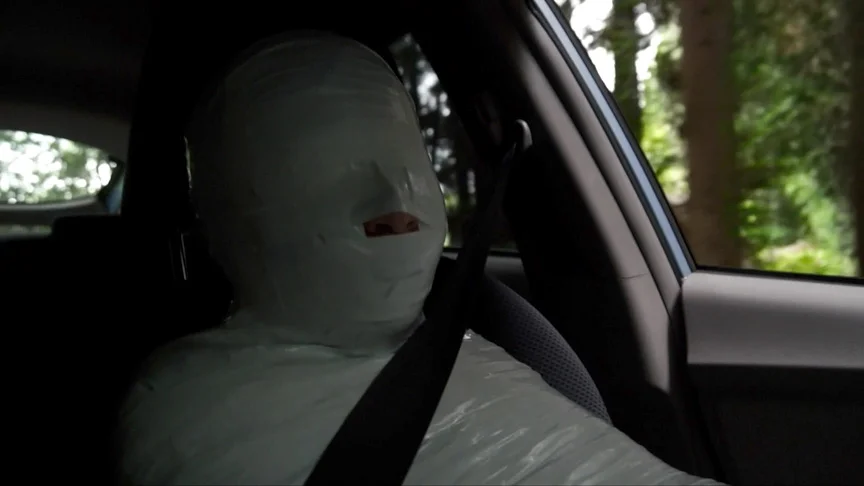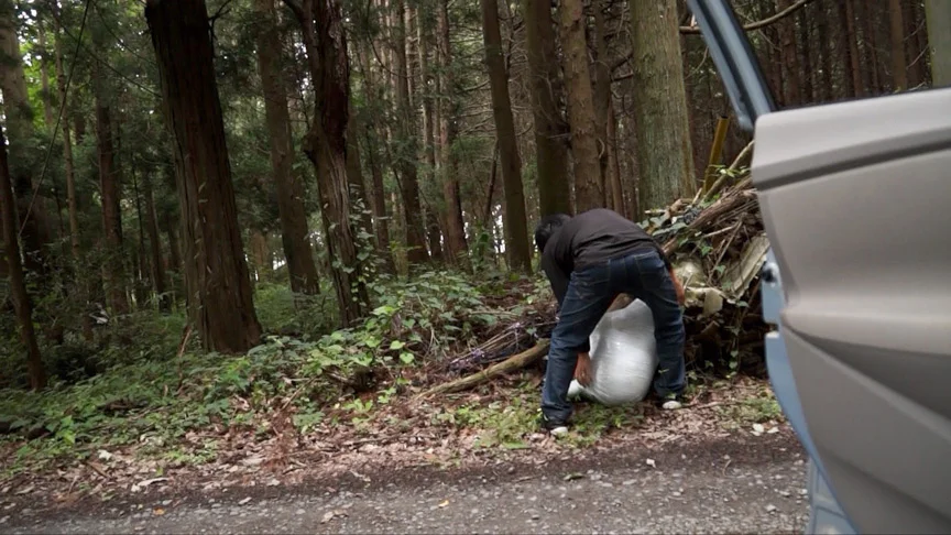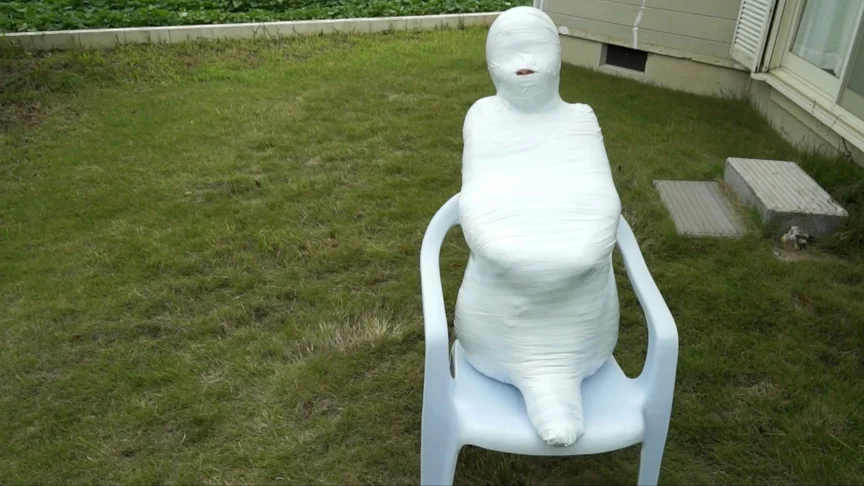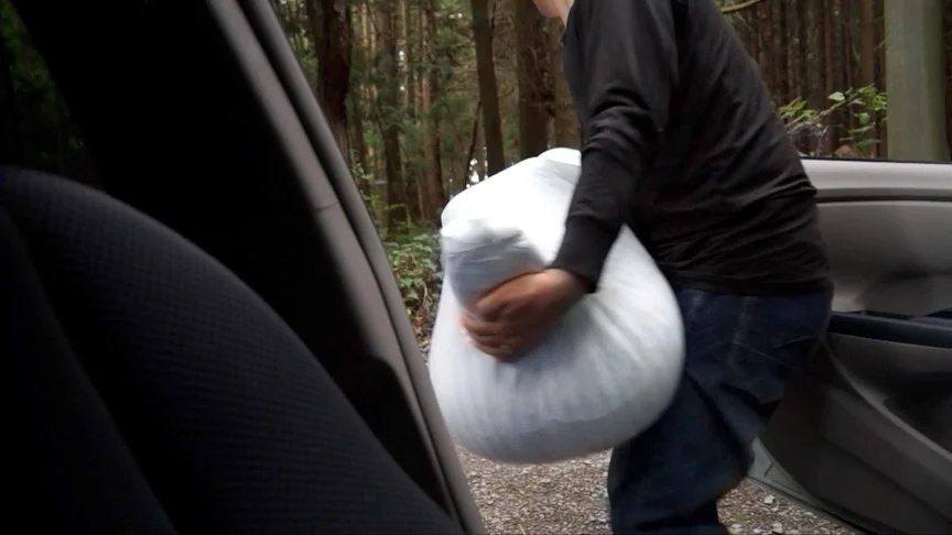 この作品は、「Buried alive -First part-」と「Buried alive -Second part-」に、収録されなかった映像です。「Buried alive -First part-」で、ぐるぐる巻いた直後の映像です。巻いた後に、自動車に乗せ、森の中に廃棄し、放置します。その後、回収して、芝生で記念撮影です。この映像後、モデルさんに一旦出てきてもらって、休憩後に再度巻き直し、埋めると言う流れが本来の流れなのですが、上記の「自動車と、廃棄&放置」が、この映像となります。=なぜ収録しなかったの??=野外撮影の際に、ボクが運転する為に、お手伝いいただいた方にビデオの撮影をお願いしたのですが、ビデオカメラの光源の設定を室内にしたまま、お手伝いいただいた方に渡してしまった為、「映像のほとんどが白くなってしまった」「ブレがひどい」「撮影者が撮影途中で質問してくる」これらの理由の為、収録しなかったのですが、こんな映像でも見てみたいと言う人向け映像です。