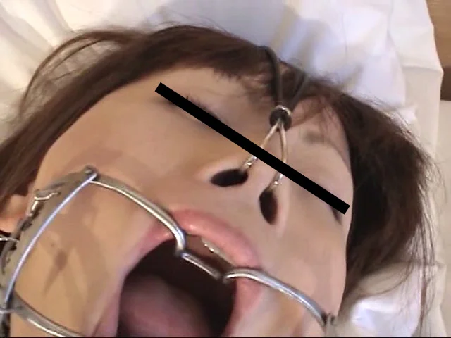 ノーズクリップを付けた女性が、さらに開口器を付け、変顔状態で男性にローターで責められます。 ※本編顔出し
