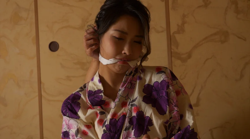 地元のお祭りにグラビアアイドルがやってきたので、家にさらって浴衣姿のまま縛ってやりました。といっても手足をボンデージテープで縛って、口元に猿轡を咬ました程度なんですが。後半は嫌がる彼女を背後から撫でまわしてます。…という妄想を楽しみ下さい♪